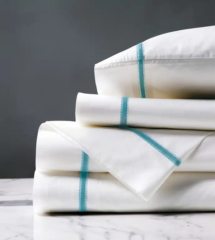 - Pick the softest sheets. When it comes to the softest sheets, there are numerous considerations to make. Generally, the higher the thread count, the softer the sheet. Especially comfortable sheets typically range anywhere from 200-count up, though it’s all about personal taste – test yours out. Egyptian cotton is famous for its breathability, and the more washes cotton sheets have been through, the softer they become. Sophisticated details like decorative satin stitching on the edges of sheets will increase the luxuriousness of your designer bed sheets.